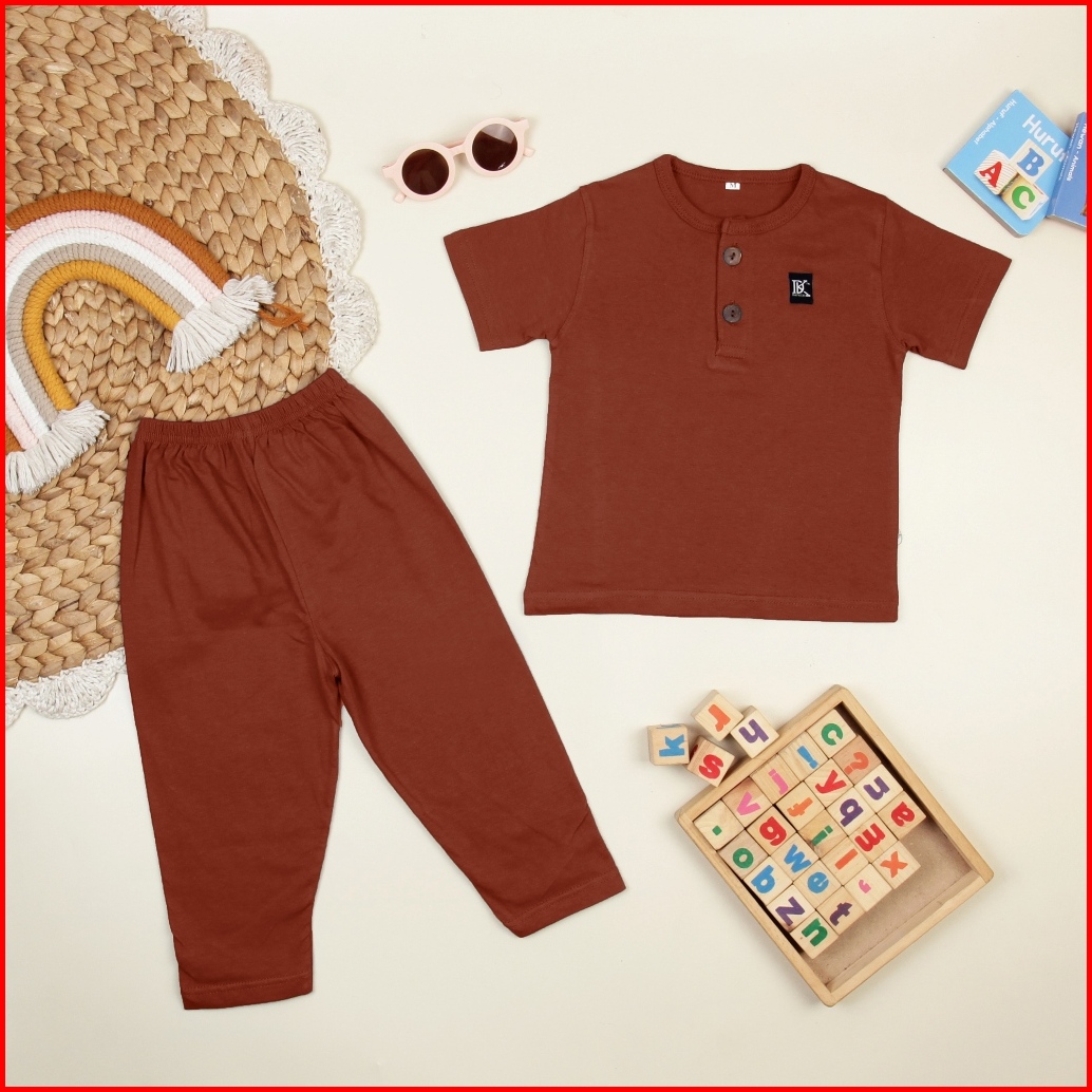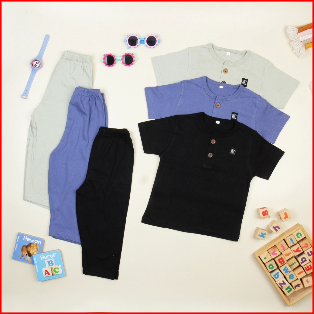 Dapkids Setelan Anak Laki Laki Dan Perempuan 0- 6 Tahun Lengan Pendek Celana Panjang Anak Motif Kancing One Set Anak