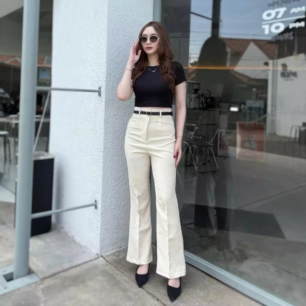 Kylie Cutbray Highwaist Pants - Celana Kerja Kantor Panjang Wanita Flare Semiwool Nyaman Anti Kusut