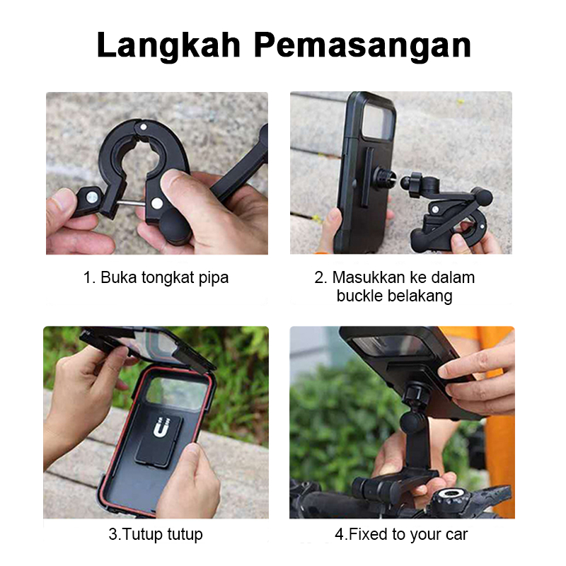 Bestool Holder Hp Motor Waterproof Anti Air Kuat Kokoh Untuk Pemasangan Di Stang Motor / Tempat HP Anti Air 360 derajat