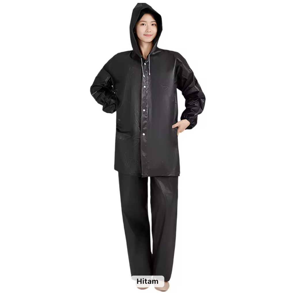 Jas Hujan Eva Dewasa Celana + Baju 1 Pasang Bahan Tebal Raincoat Korea