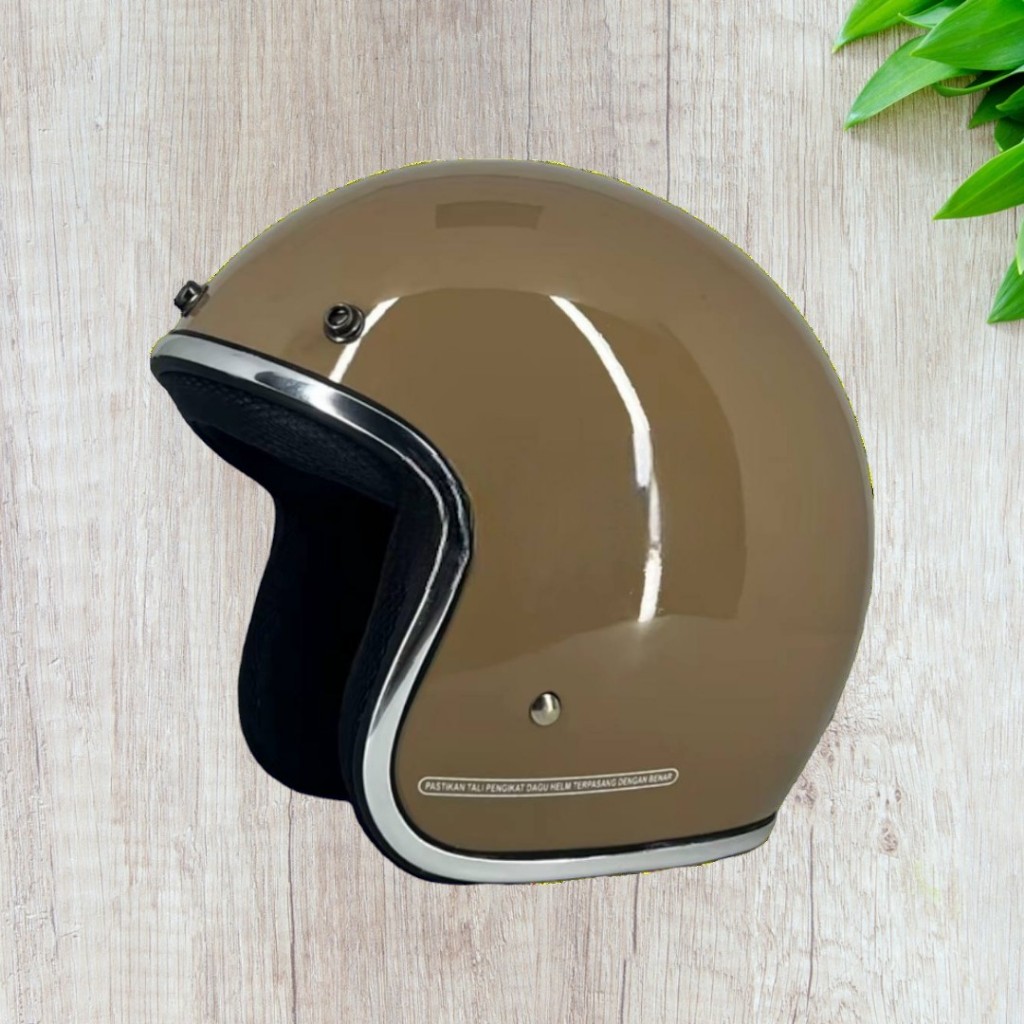 Helm Retro Aesthetic Pria wanita Dewasa Bogo List chrome Full leher Kaca flat Cembung Bahan Kokoh SNI