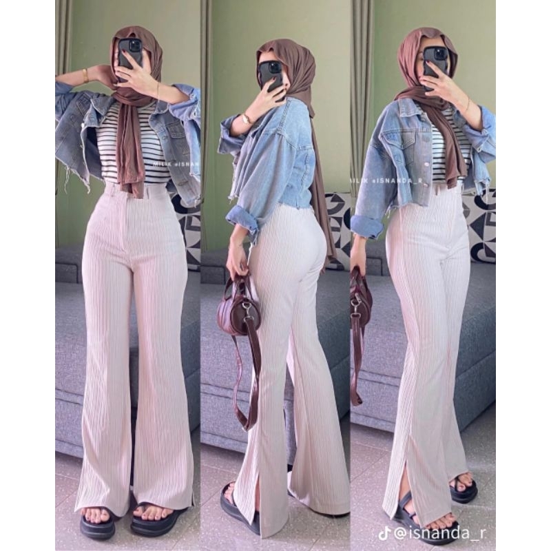 CELANA CUTBRAY KNIT WANITA Higwaist Knit Cutbray Wanita Premium