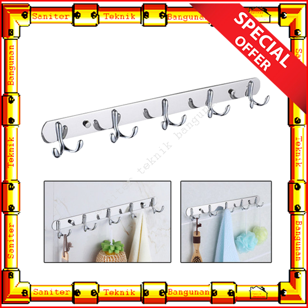 Gantungan Baju Handuk Stainless 5 Kait Hitam Oracle Rak Kamar Mandi