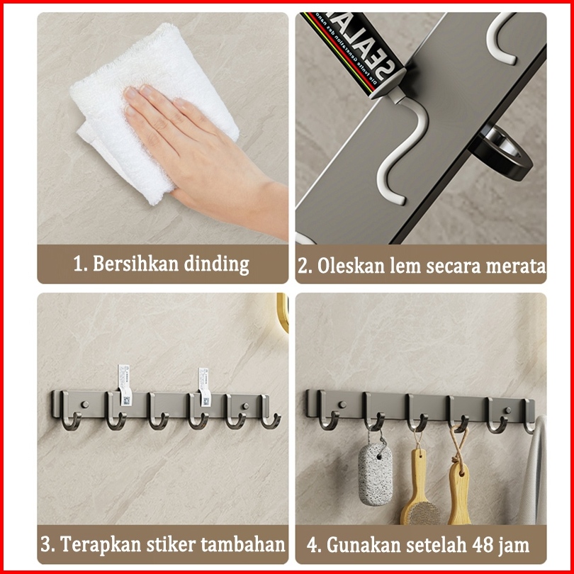 Yisstiee Kait Pakaian Kait Dinding Kamar Mandi Tahan Air Dan Tahan Karat Tidak Memerlukan Pengeboran