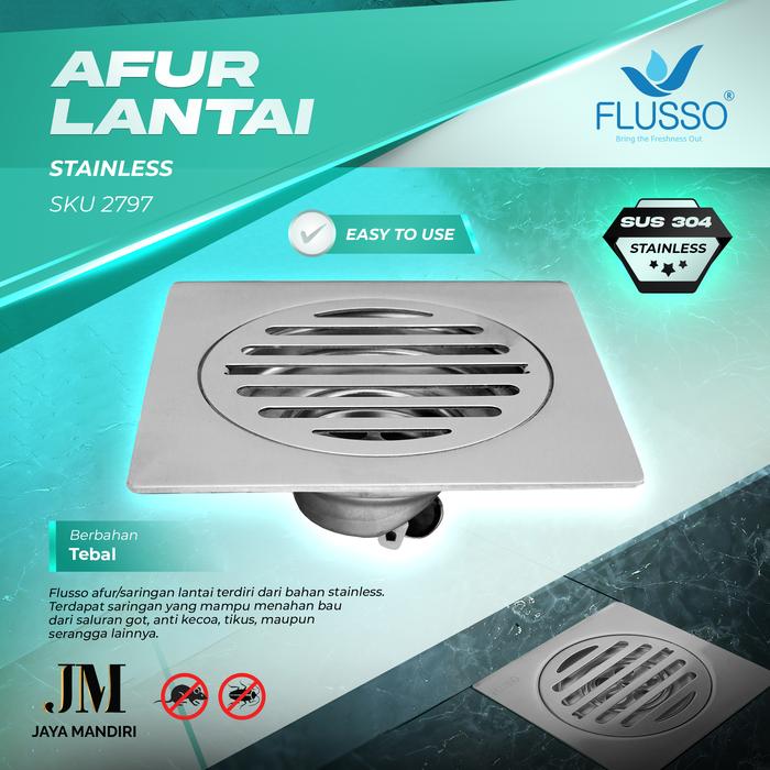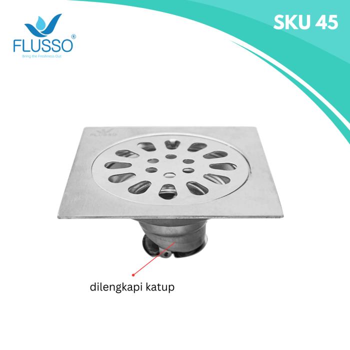 BEST PRODUK ! FLUSSO FLOOR DRAIN AFUR SARINGAN GOT LANTAI KAMAR MANDI STAINLESS ADA KATUP 2797 - 45 DENGAN KATUP ORI