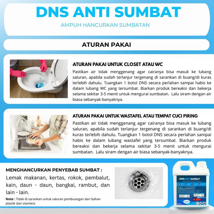 BEST PRODUK ! DNS ANTI SUMBAT SALURAN AIR PIPA MAMPET WC WASTAFEL TEMPAT CUCI PIRING 1 LITER CAIRAN - 500ML ORI