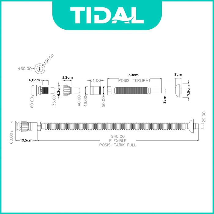 BEST PRODUK ! AFUR + SELANG SALURAN PEMBUANGAN AIR WASTAFEL TIDAL TD070 ORI
