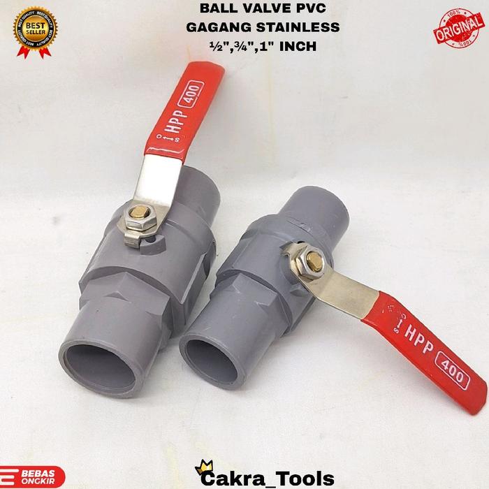 BEST PRODUK ! BALL VALVE PVC GAGANG STAINLESS / STOP KRAN AIR TEBAL 1/2", 3/4", 1" - 1/2" ORI