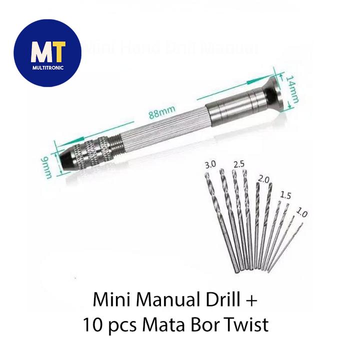 YUK BELI ! BOR TANGAN MANUAL MINI HAND DRILL PORTABEL + 10 PCS MATA BOR TWIST ORI