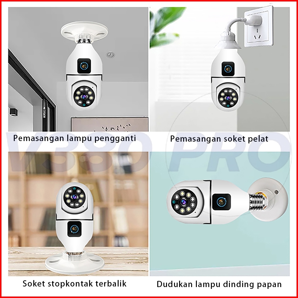 V380 Pro Kamera Cctv Bohlam Dual Lensa 8mp Alarm Deteksi Manusia Ai Penglihatan Malam Inframerah