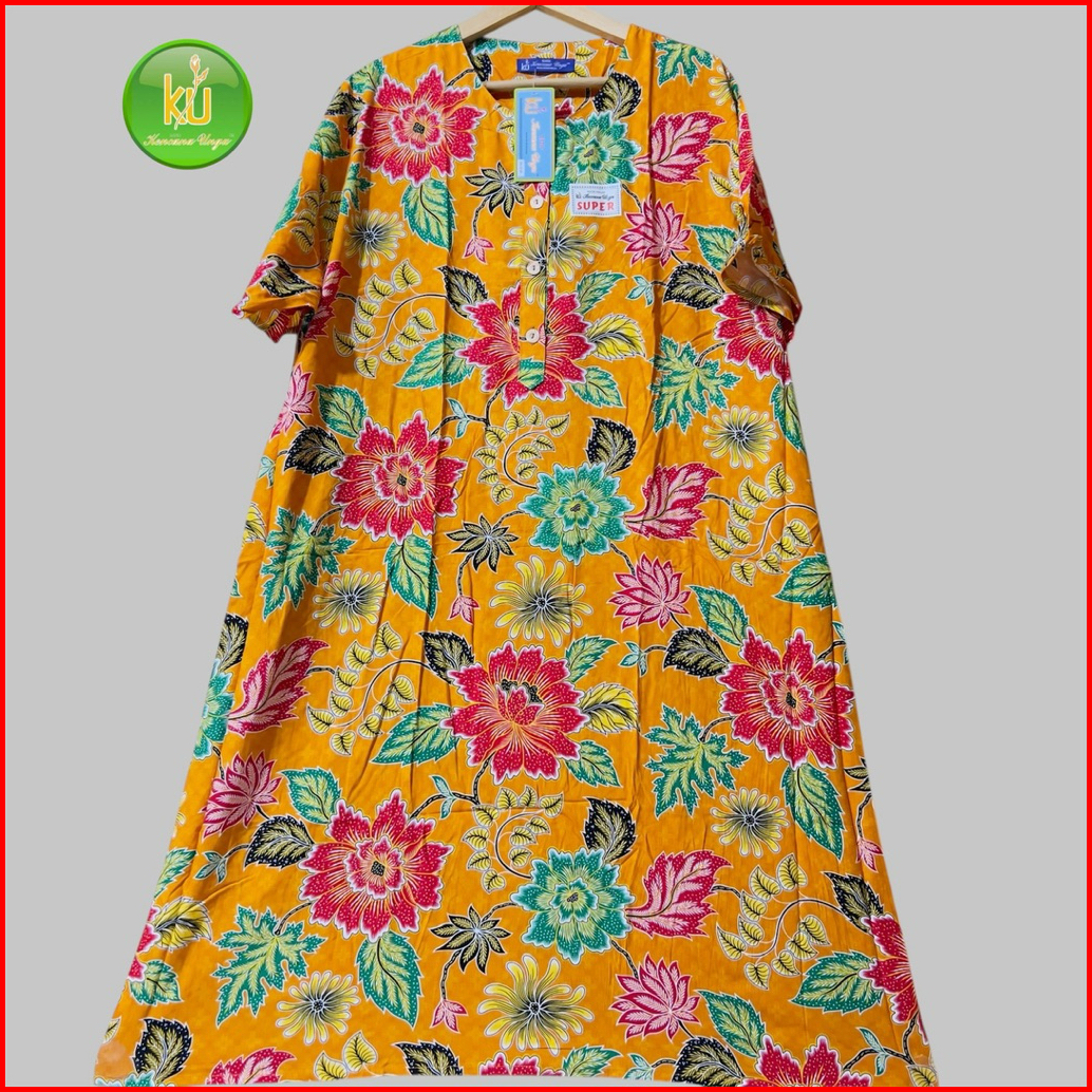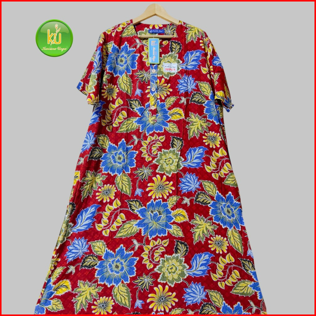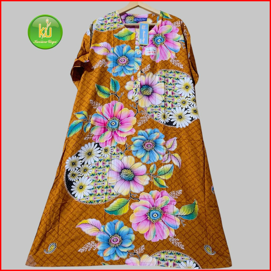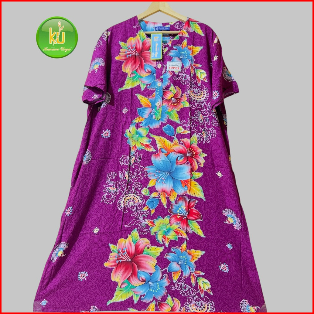 Daster Jumbo Lengan Pendek Ld 140 Cm Original Batik Kencana Ungu L3 Super Label Biru Motif Bunga Random Busui Bumil 4kan
