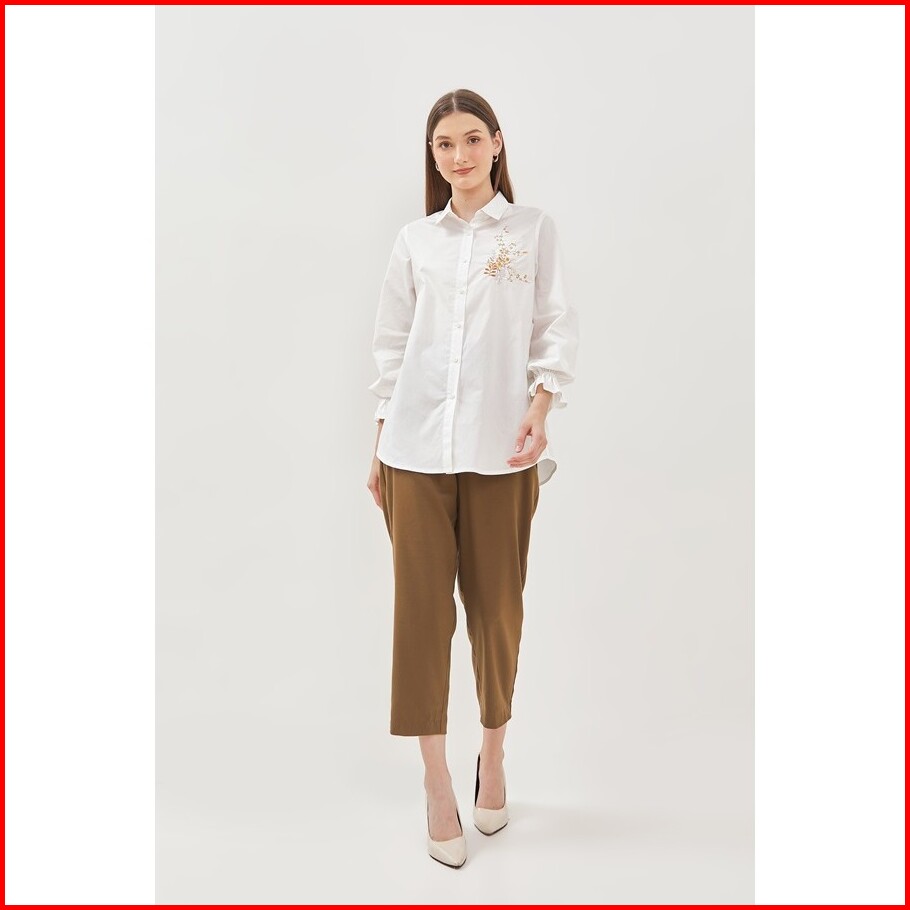 Minimal Ainsley Tunik Wanita Lengan Panjang Embroidery Warna Off White Putih - Regular Fit