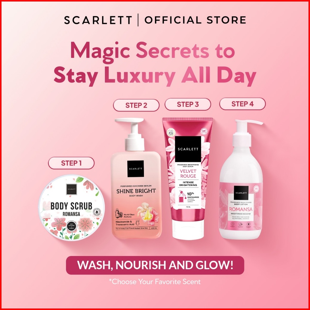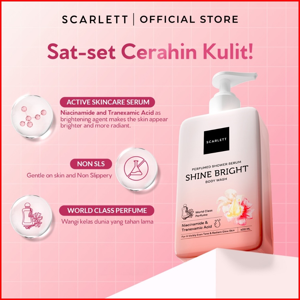 Scarlett Perfumed Shower Serum 400ml Shine Bright Brightening Shower Gel Dengan Niacinamide Tranexamic Acid Sabun Mandi