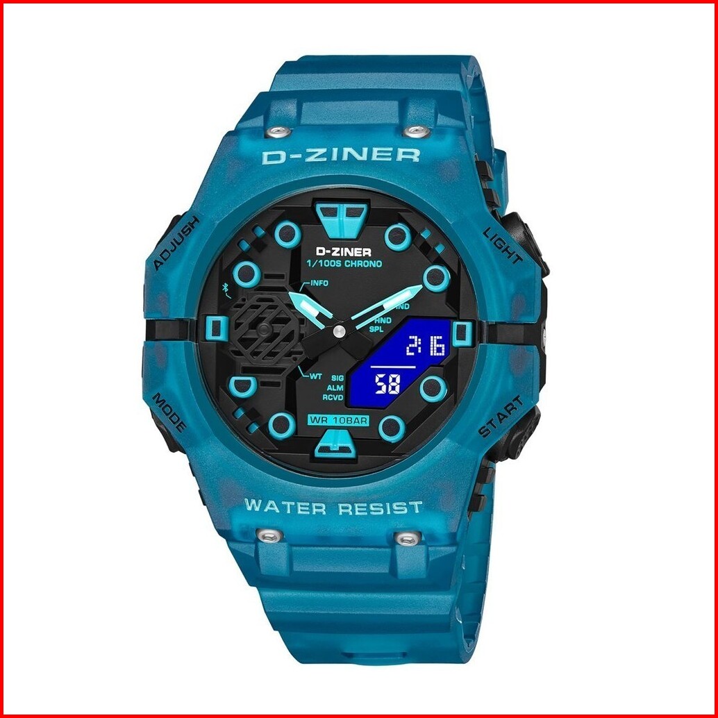 Dziner Jam Tangan Pria 8337 Rubber Double Time Water Resistant 10atm Promo