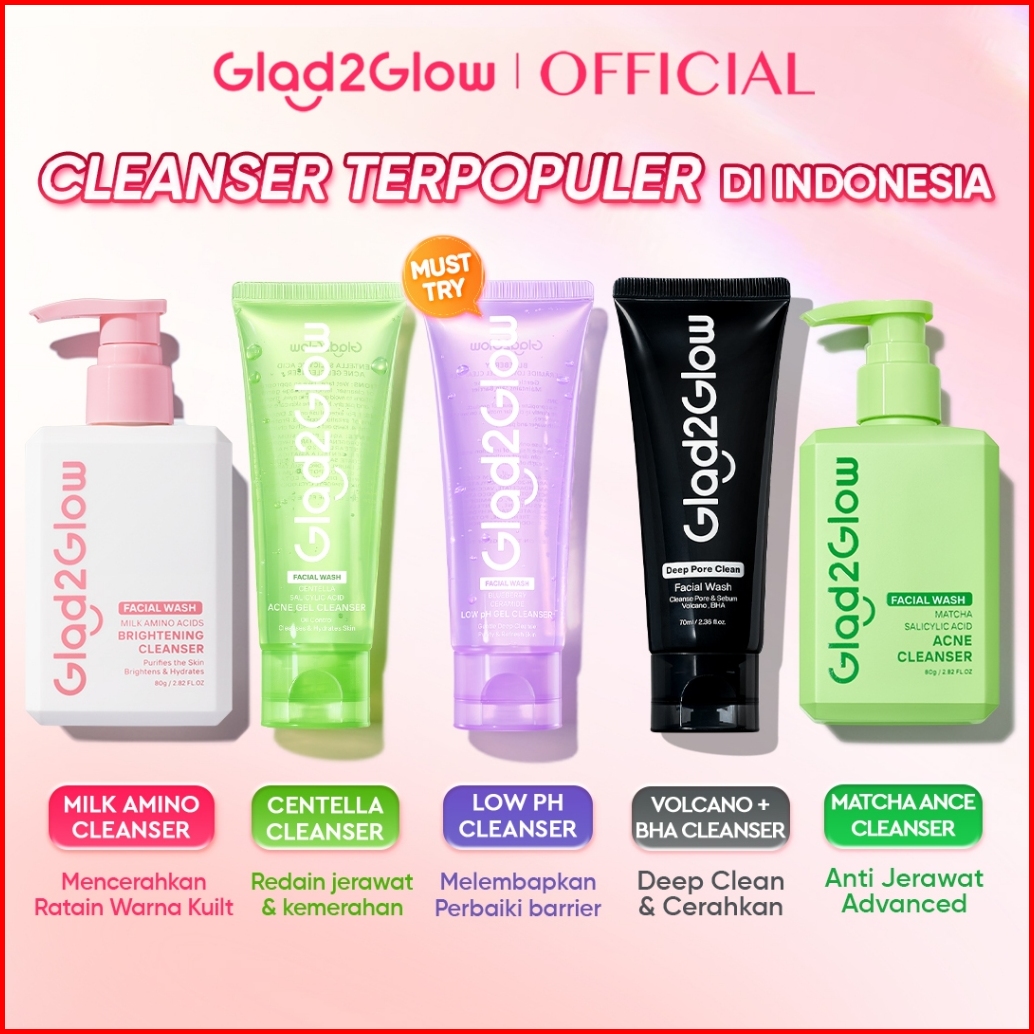 Glad2glow Facial Cleanser Series-facial Wash Low Ph Gel Centella Mencerahkan Pencerah Wajah Anti Jerawat Penuaan Hilangk