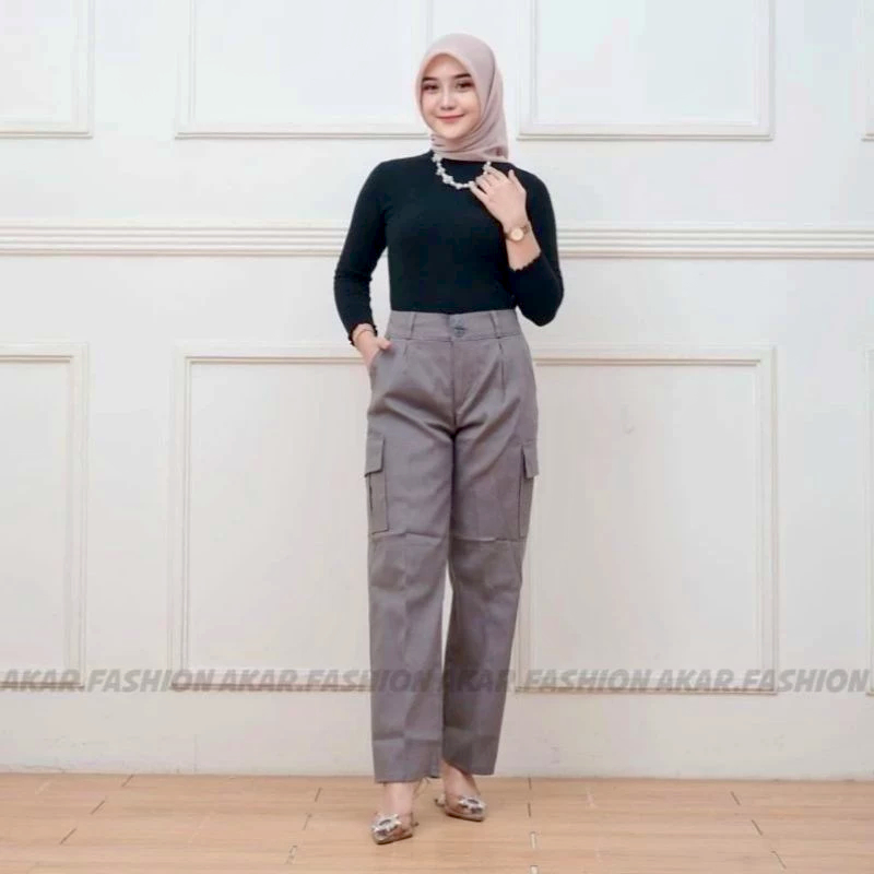 Celana cargo wanita highwaist premium celana kekinian wanita atletis korean style