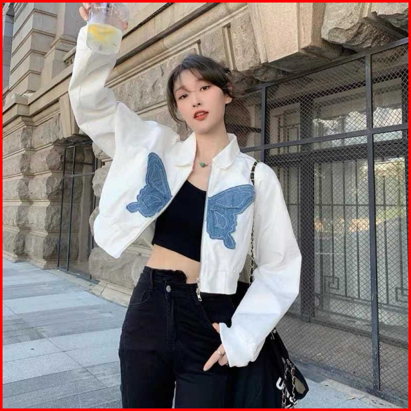 Jaket Crop Zipper Butterfly Fleece Ld 110 P 45
