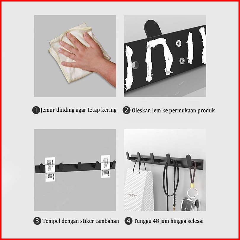 Meidoo Gantungan Kamar Mandi Kait Dinding Tahan Air Bebas Pelubang Hitam Putih