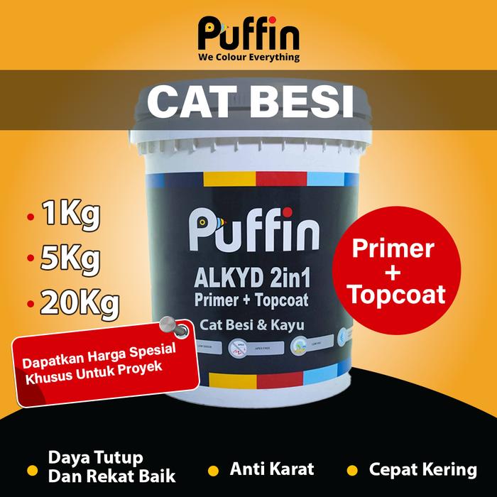 Terlaris Cat besi anti karat PUFFIN alkyd 2in1 1kg / cat minyak 2 in 1 - White 1 Kg Keren
