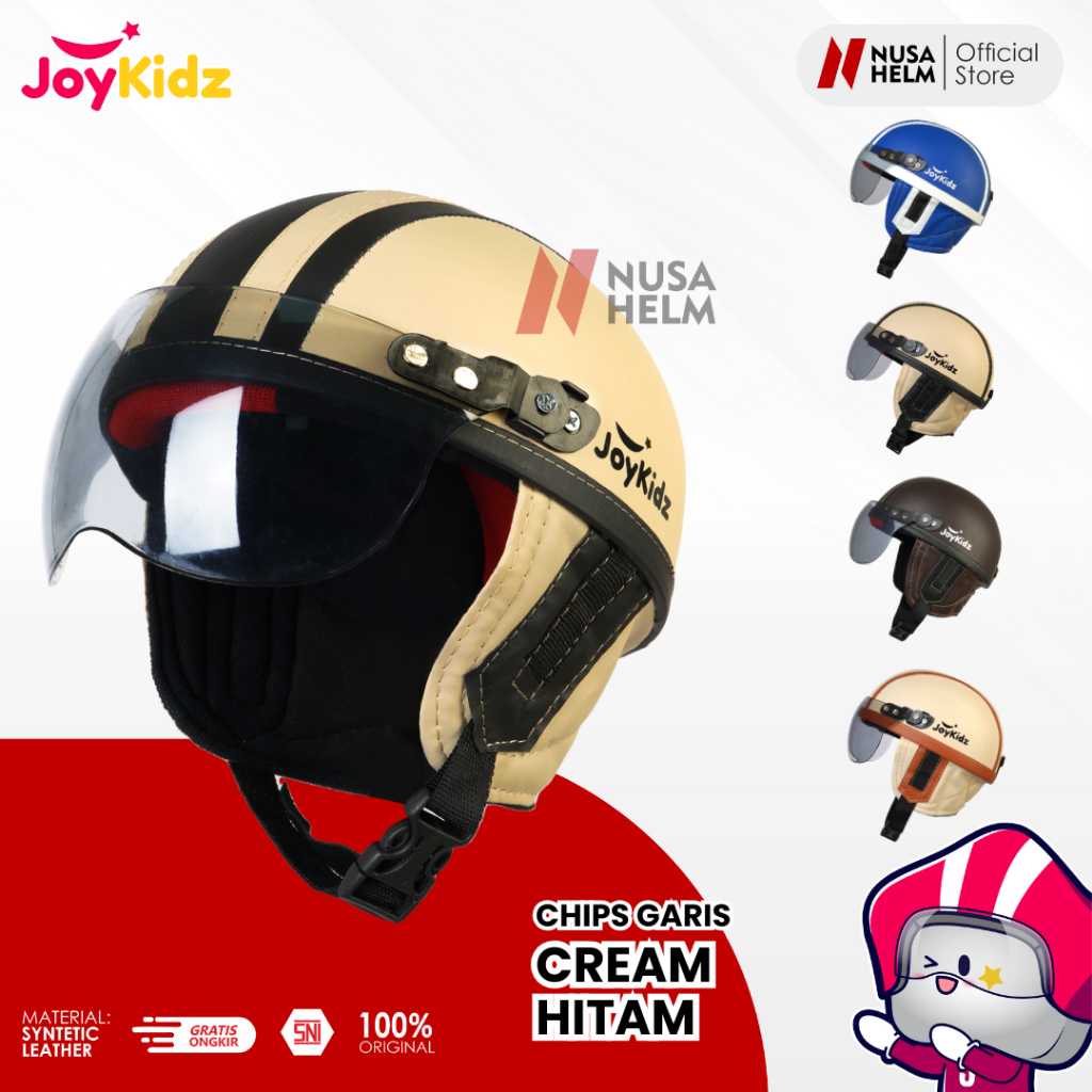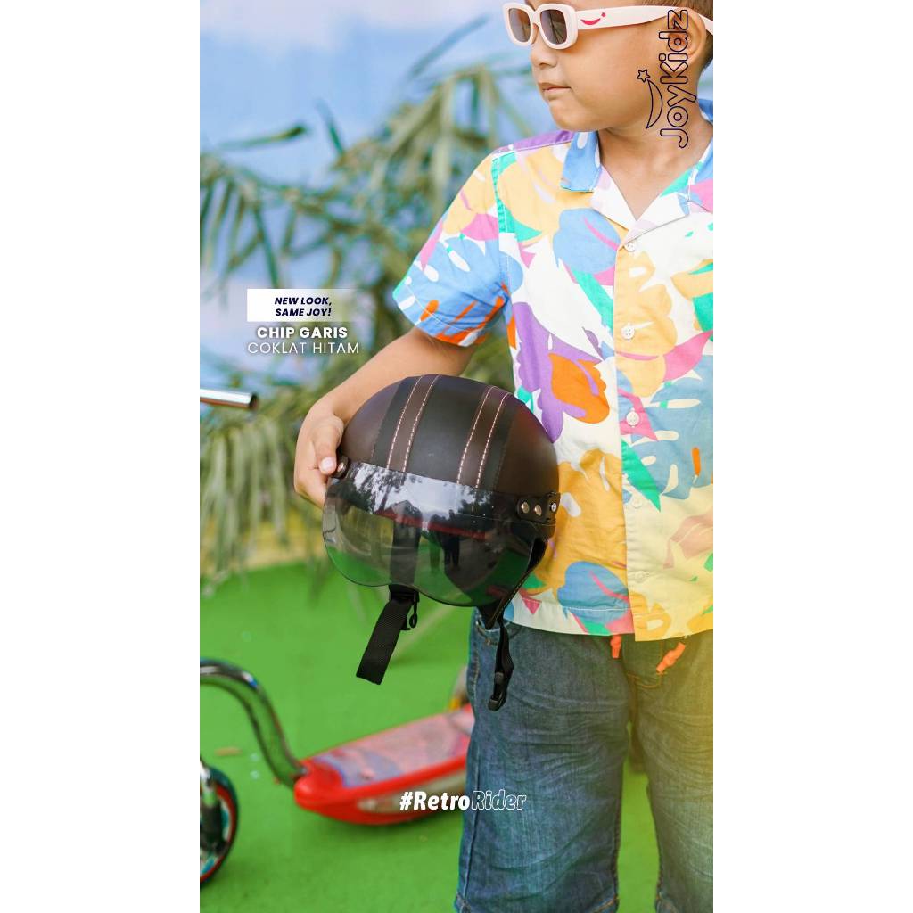 Helm Anak Untuk Usia 1-5 Tahun Polos Garis - Cream Coklat