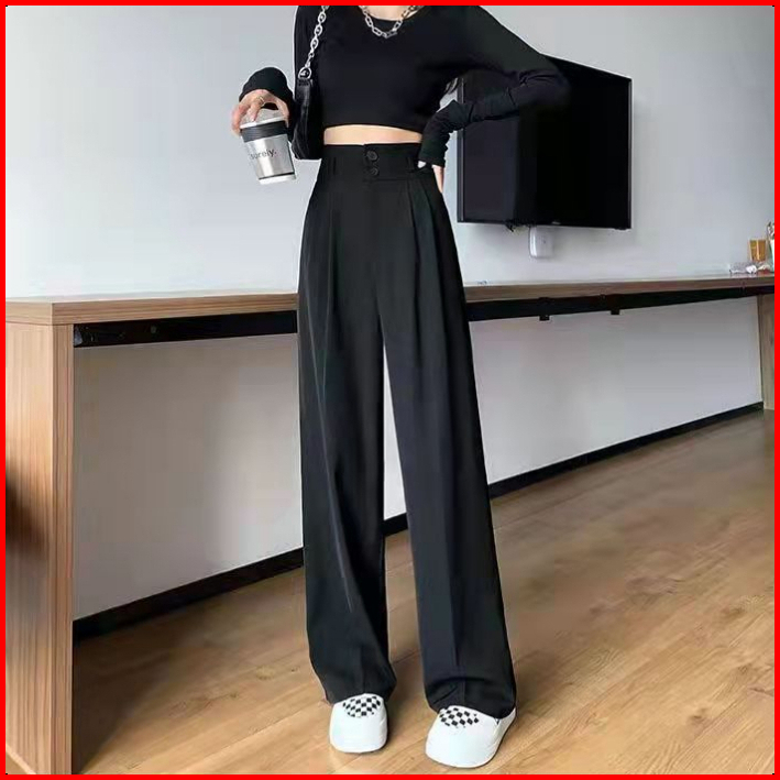 Gdtima Celana Panjang Wanita Wide Highwaist Pants Celana Kantor Wanita Basic Korean Long Trousers