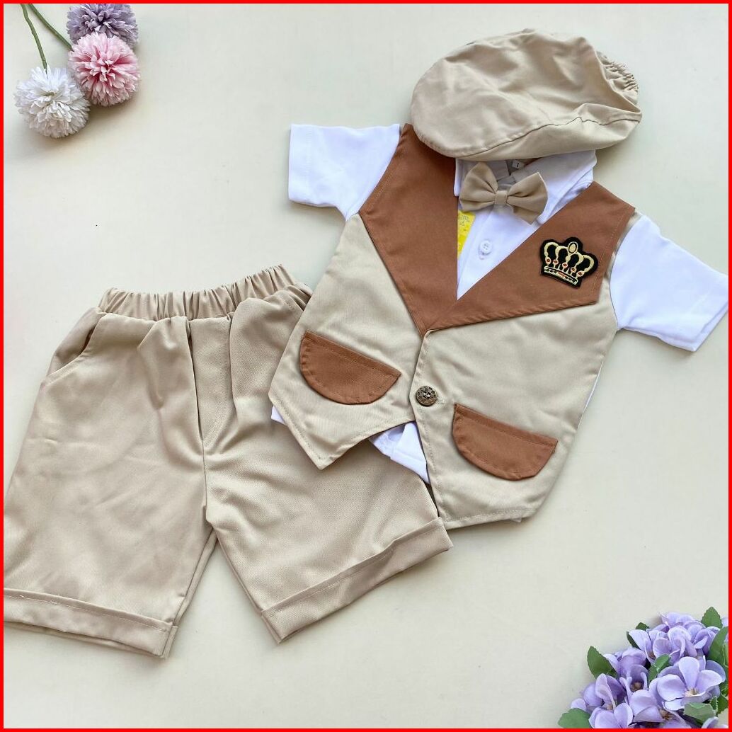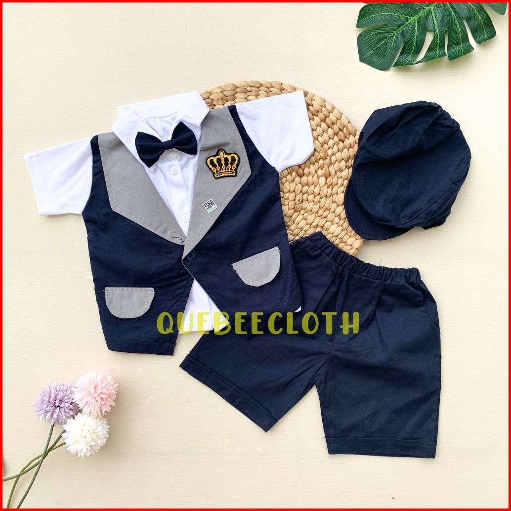 Quebeecloth Setelan Baju Baby Cowok Free Topi Rompi Pita Buat Pergi Ke Kondangan Baju Bayi Super Ganteng -edw