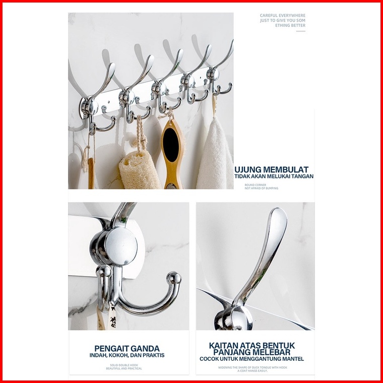 Goland Gantungan Baju Dinding Tempel Besi Stainless Steel Kuat 5 Hook
