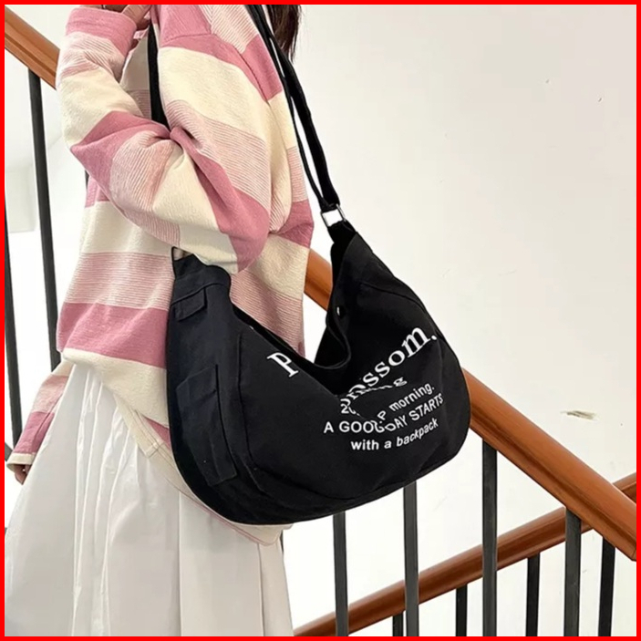 Tas Selempang Canvas Wanita Casual Trendy Slingbag Cewek Korea Lucu Blosom