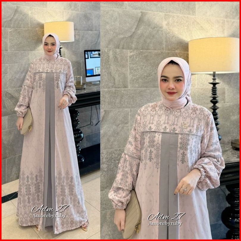 Adm 27 Dress Amore By Ruby Gamis Mewah Motif Tribal Bahan Ceruty Mewah Busui Friendly All Size Jumbo Kantong Samping Set