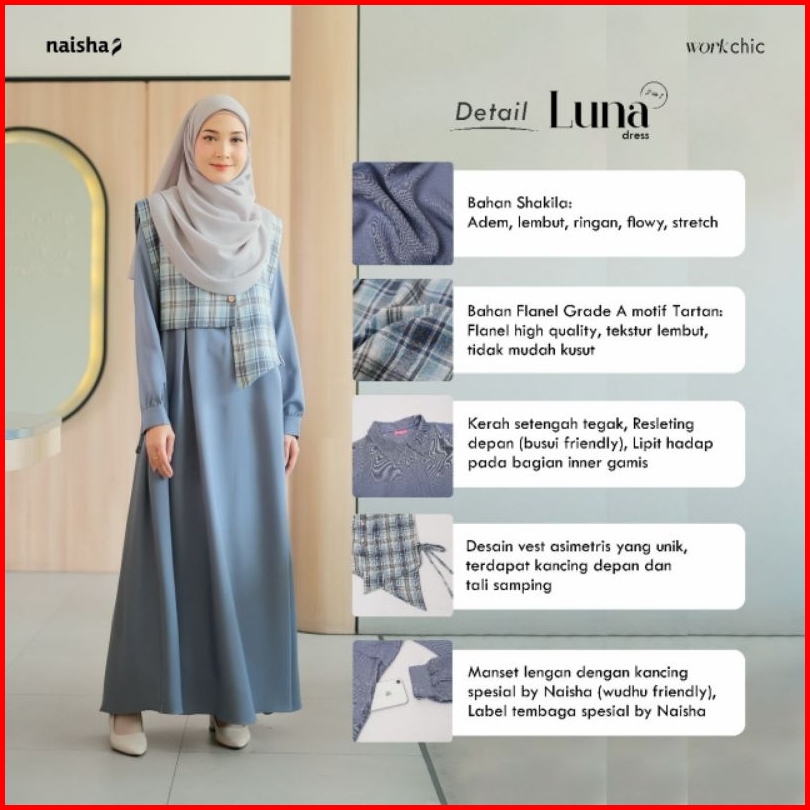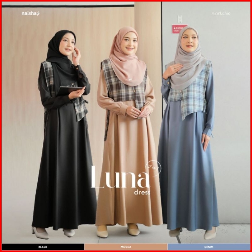 Naisha - Ready Luna Dress 2 In 1 By Naisha Dress Vest Dress Premium Dress Dress Remaja Gamis Promo Korean Dress Gamis Mu