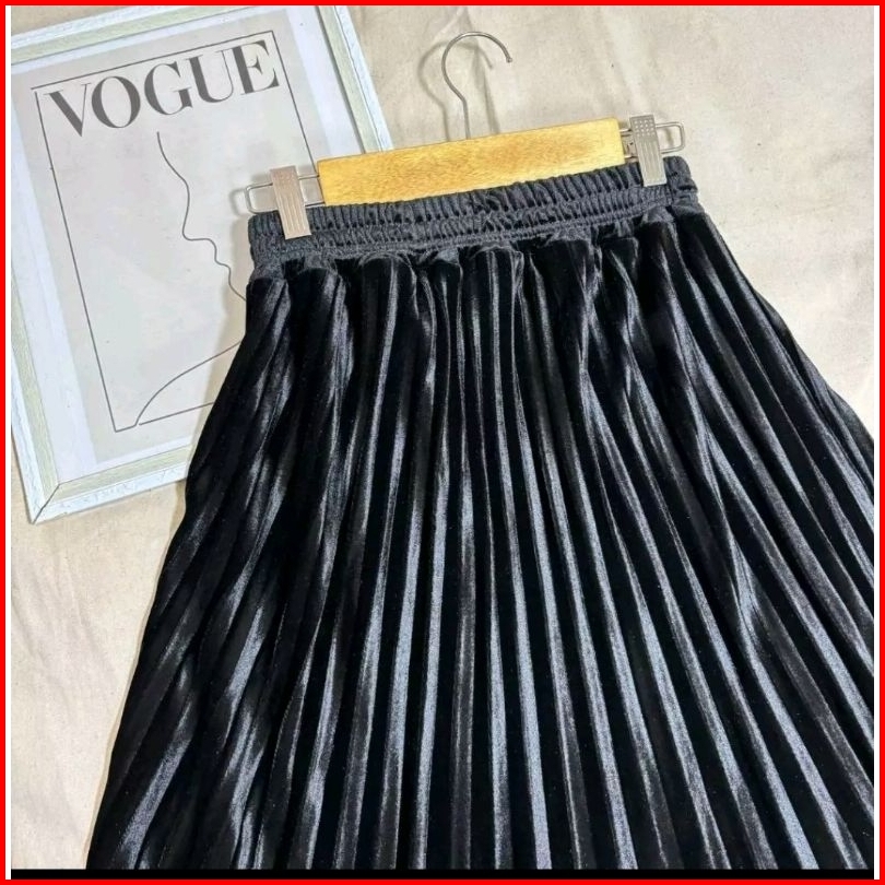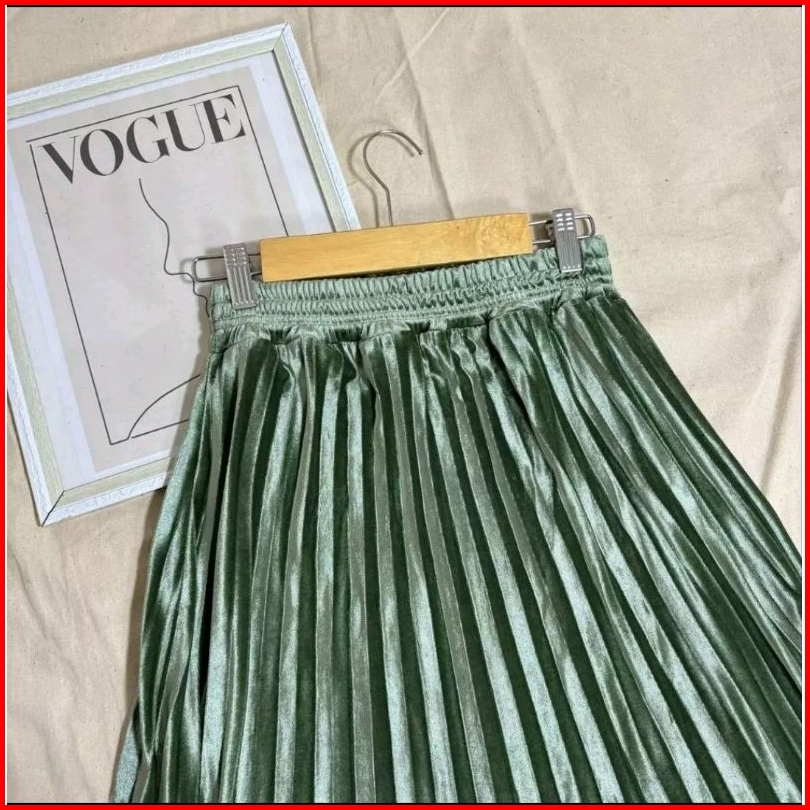 Rok Plisket Bludru Velvet 7 8 Premium Rok Plisket Bludru Pendek