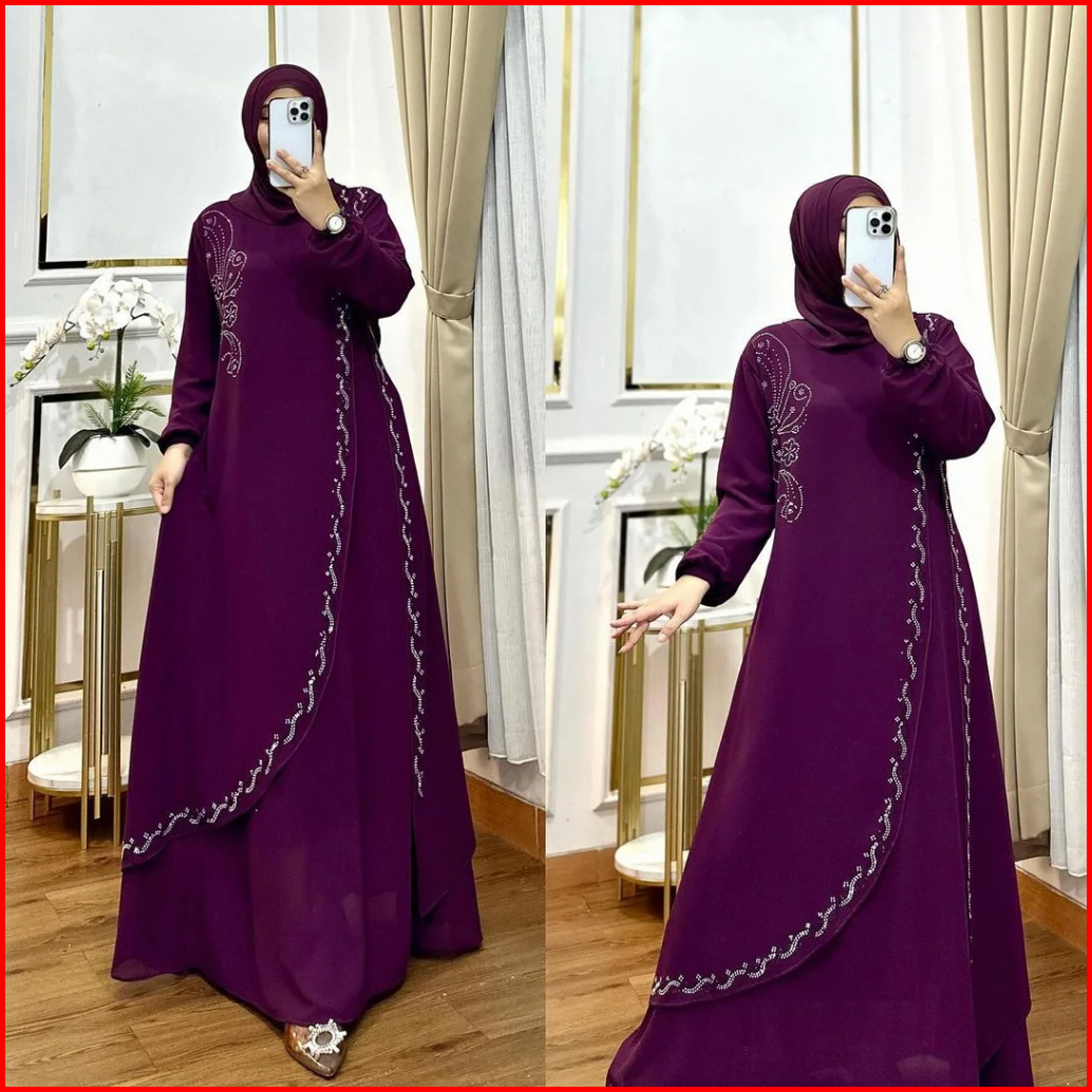 Ellyfashion Elvira Dress Bahan Cerutty Gamis Lebaran 2024 Model Gamis Terbaru Dress Kondangan Wanita