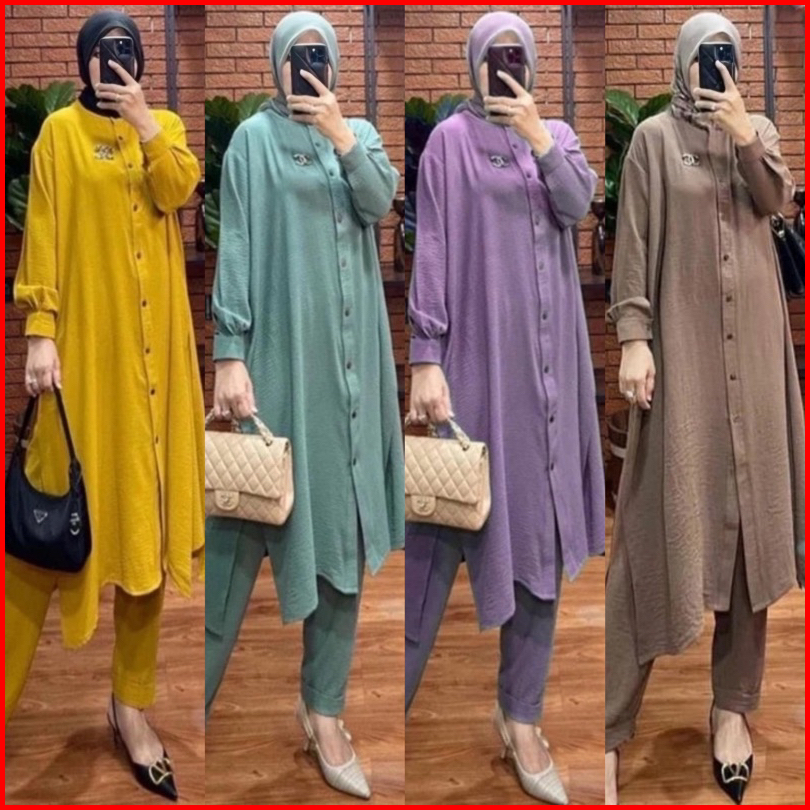 Mumu - Verona Set Setelan One Set Long Tunik Crinkle Jumbo Terbaru Fashion Solo
