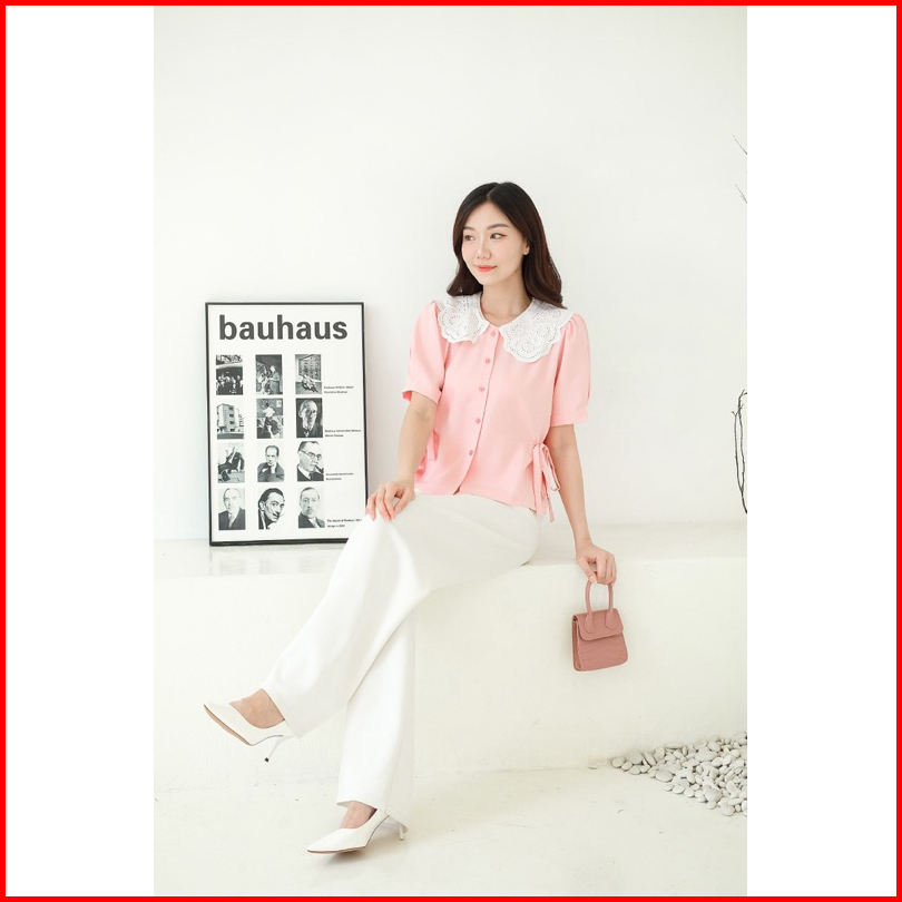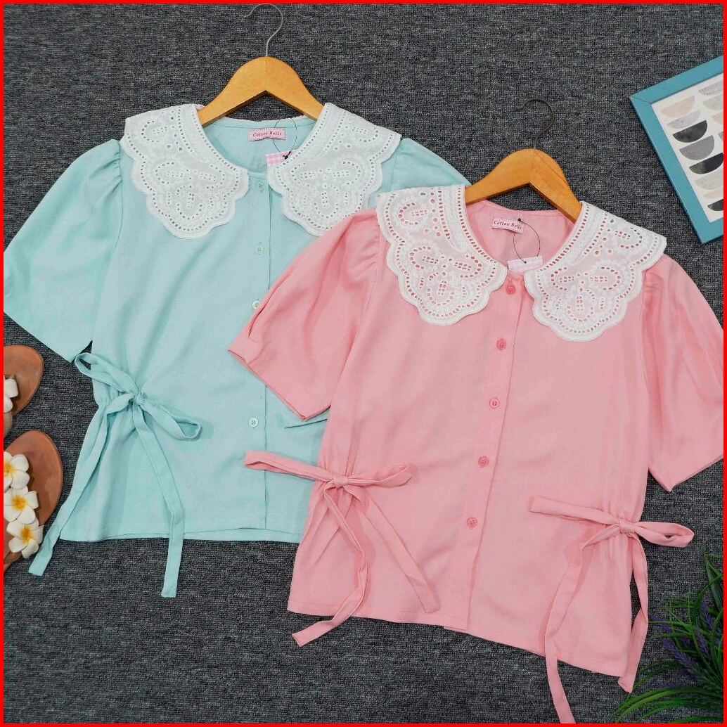 Cottonbells Baju Premium Gretania Button Collar Plaid Tied Top Sp - B 13532