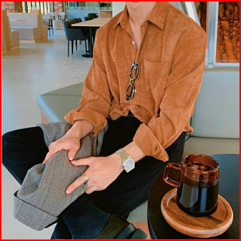 Kemeja Pria Lengan Panjang Korea Style Korean Viral Kemeja Kantong Samping Bahan Premium Bagus