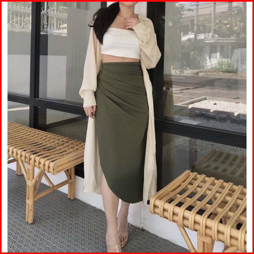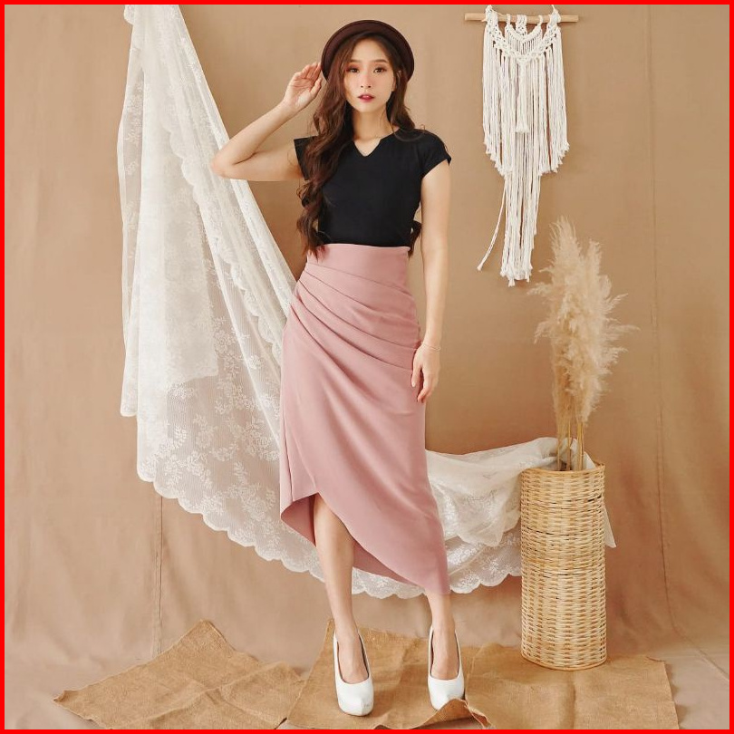 Karizka - Abby Fey Skirt Basic Plain Korean Style - Rok Asimetris Korean Casual - Rok Wanita Midi L Outlet