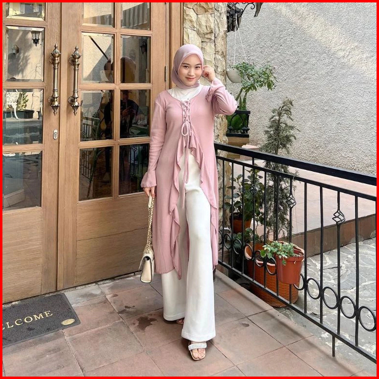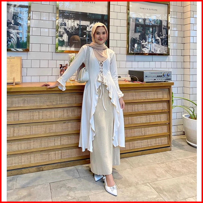 Talaoutfit - Viona Outer Wanita Knit Stretch Polos Cardigan Tali Lengan Panjang Premium Korean Style