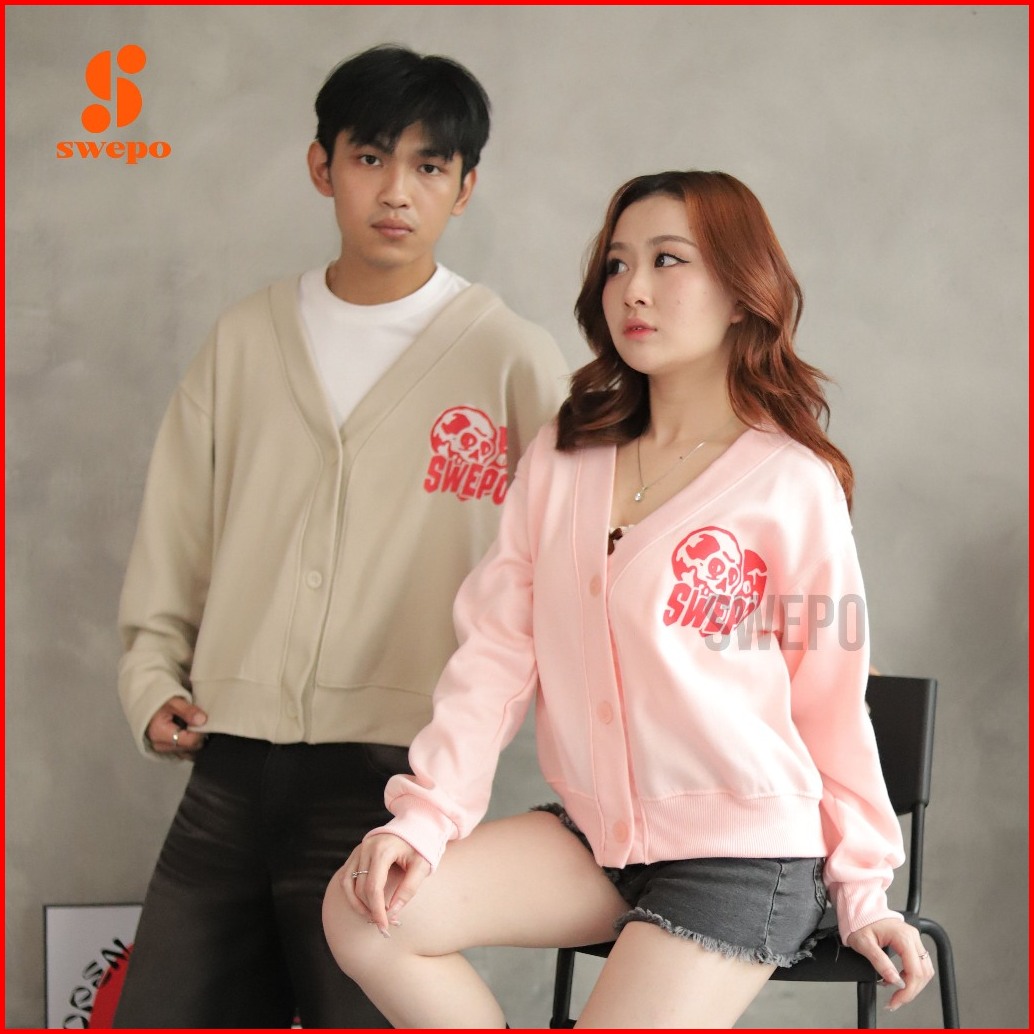 Swepo Cardigan Jennie Skull Heart Sablon Size M-xxl