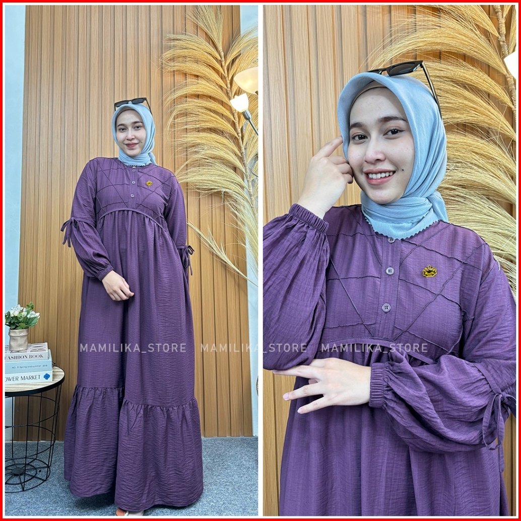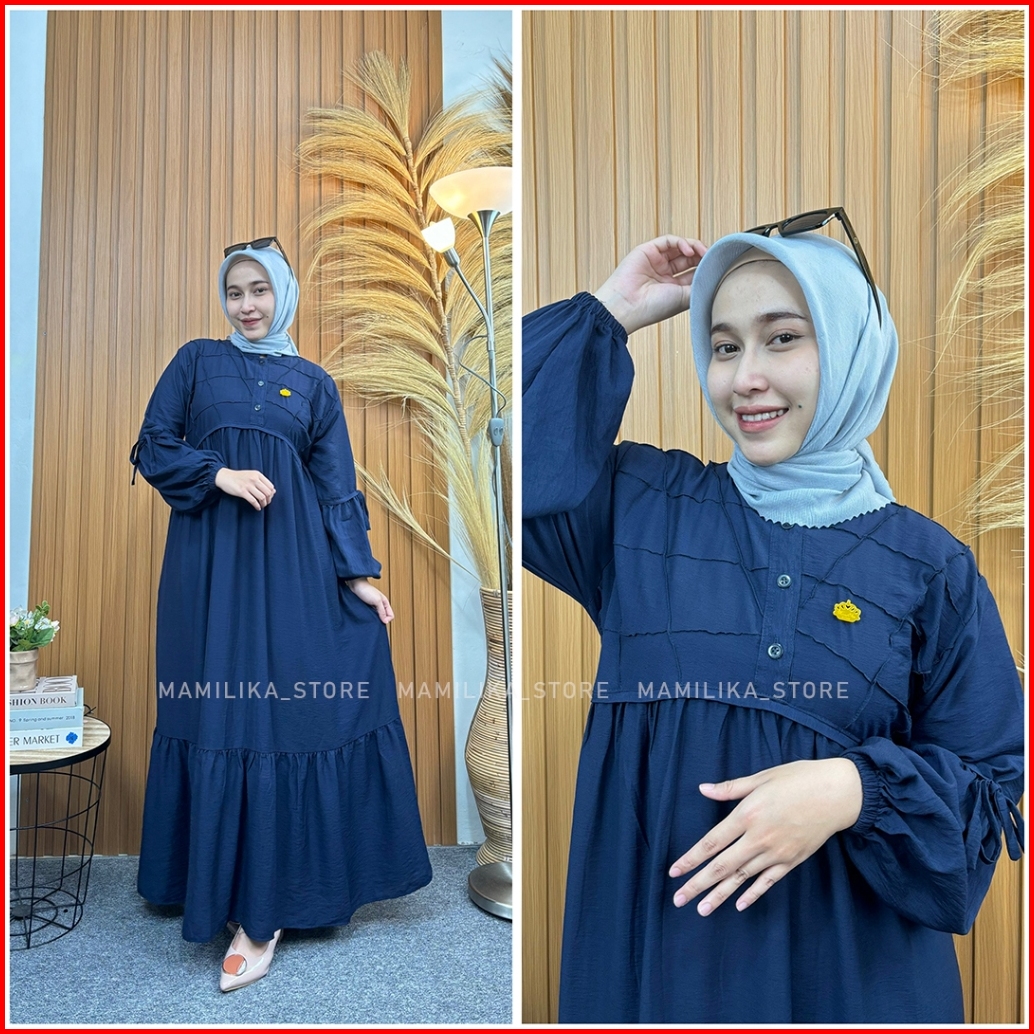 Sahiya Dress Wanita Baju Gamis Polo Linen Dress Casual Busui Friendly