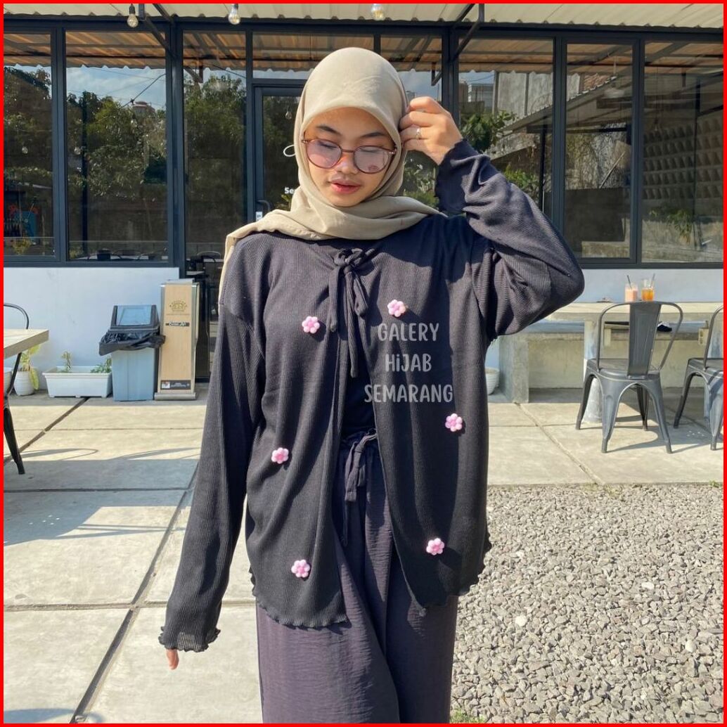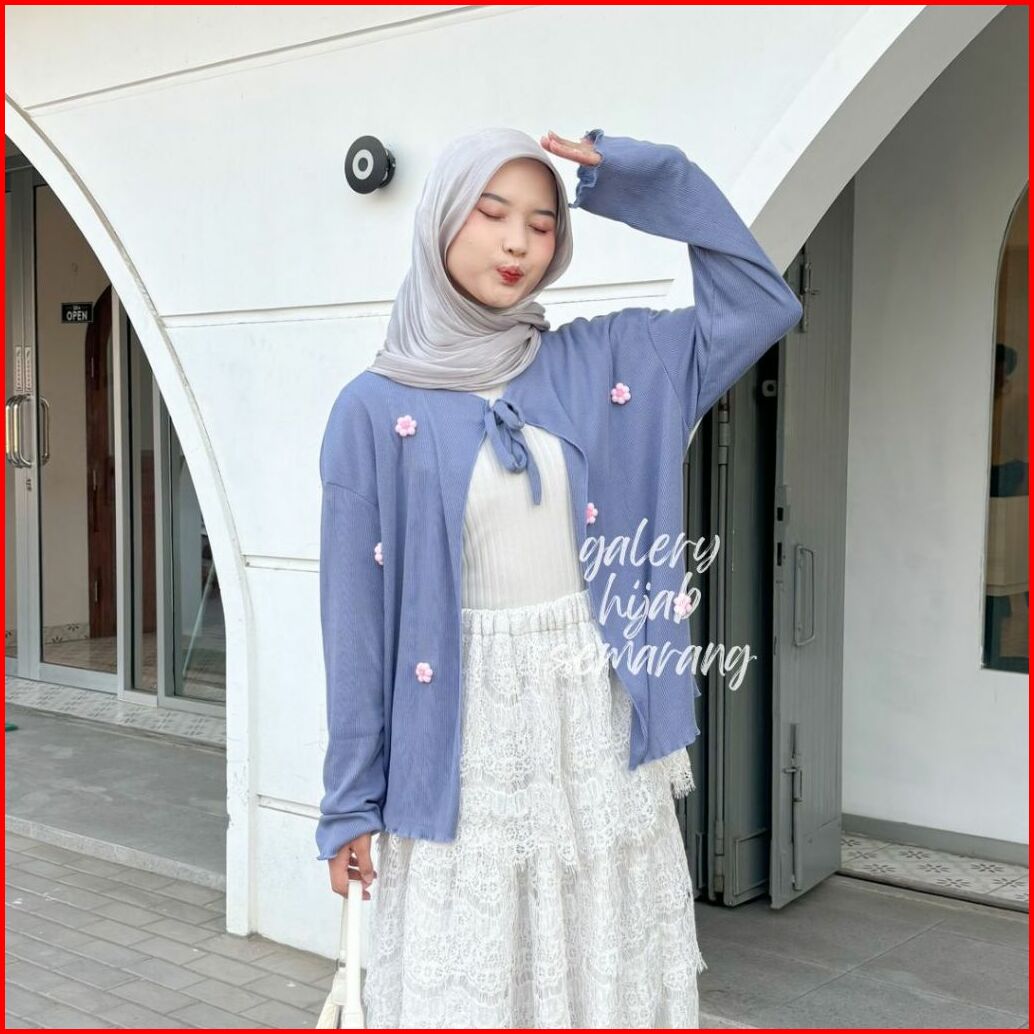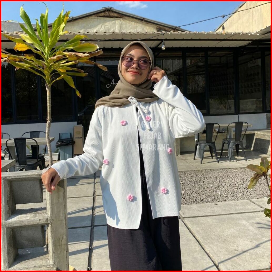 Cardigan Wanita Daisy Flower - Cardigan Lengan Panjang Tali - Kardigan Motif Bunga