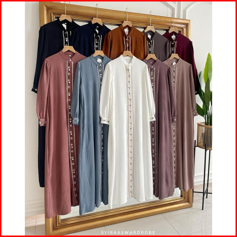 Tania Dress - Dress Wanita Crinkle Lebaran - Dress Busui Kancing Bordir Lengan Panjang - Gamis Muslim Terbaru