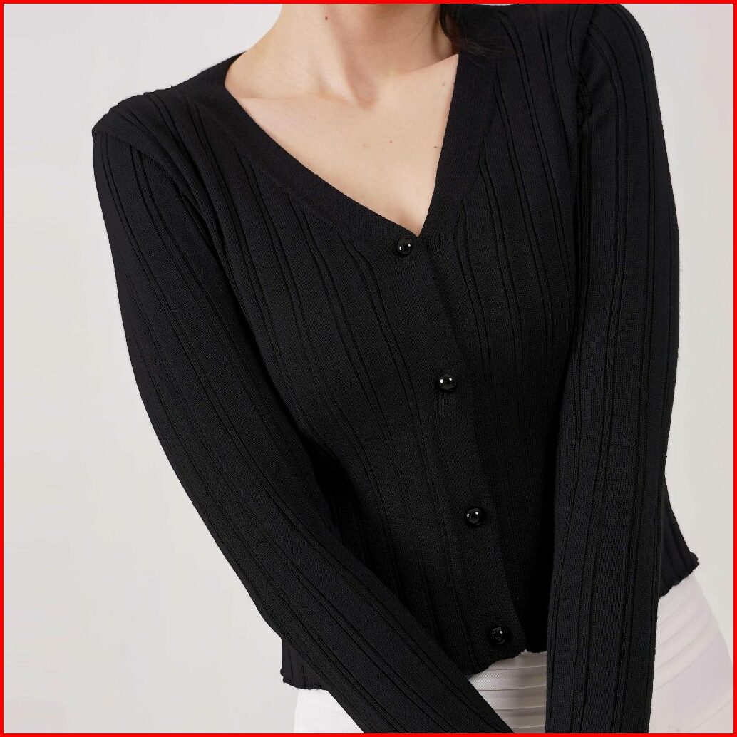 99koutlet Atasan Cardigan Polos V Neck Lengan Panjang 2179