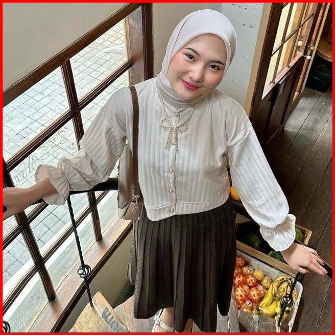 Cardigan Crop Hornet Outer Wanita Model Kancing - Blouse Cardigan Wanita Korean Style Kekinian