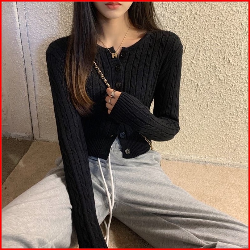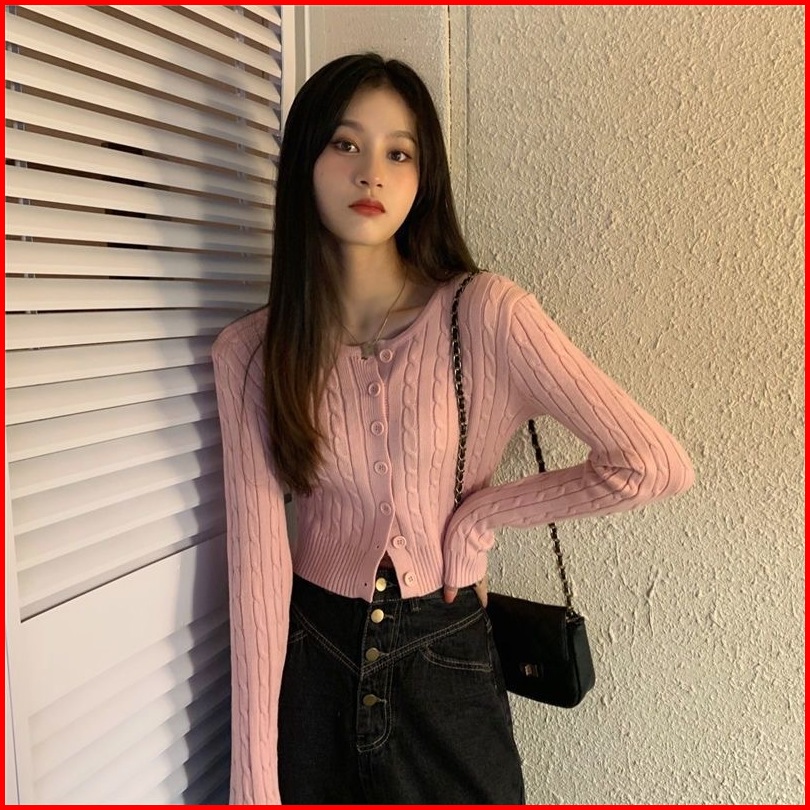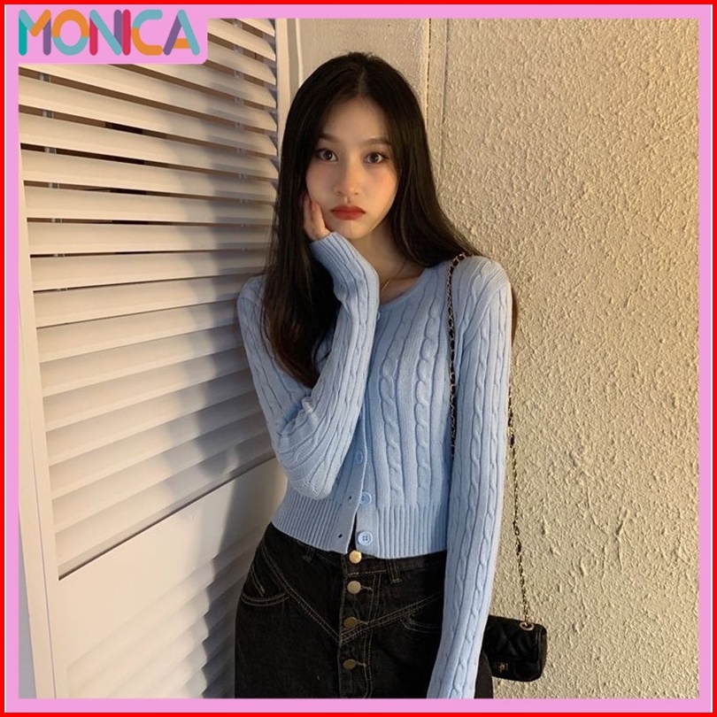 Monica Premium Cable Knit Cropped Cardigan Ready Cardi Rajut Lengan Panjang Luaran Wanita Korea Polos