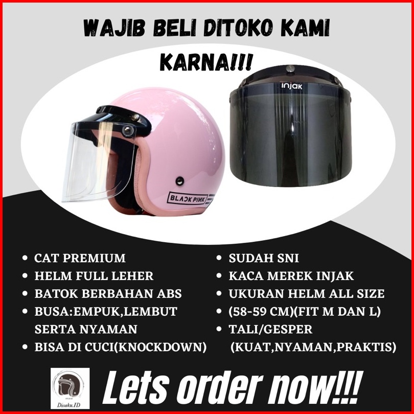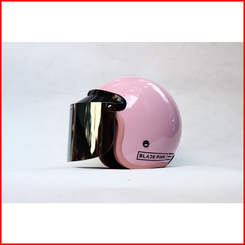Helm Bogo Retro Pria Dan Wanita Hijab Classic Original Sni Trendy Polos Pink Blackpink Kaca Datar