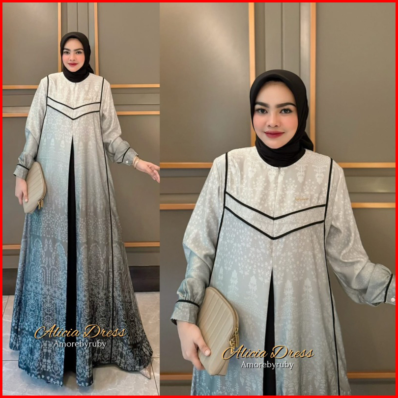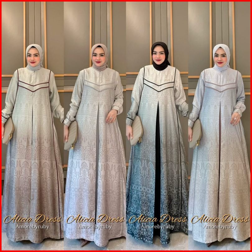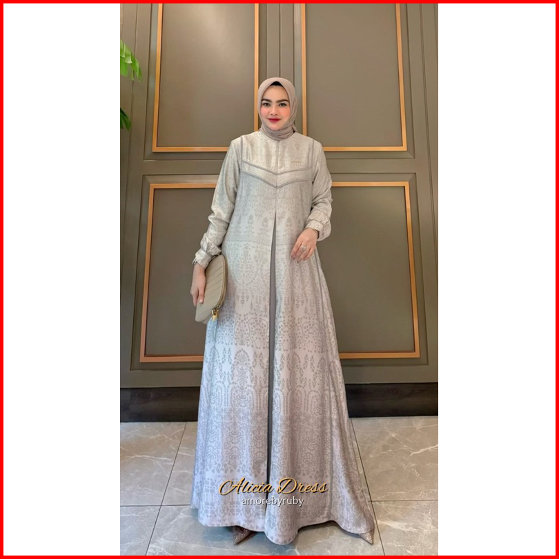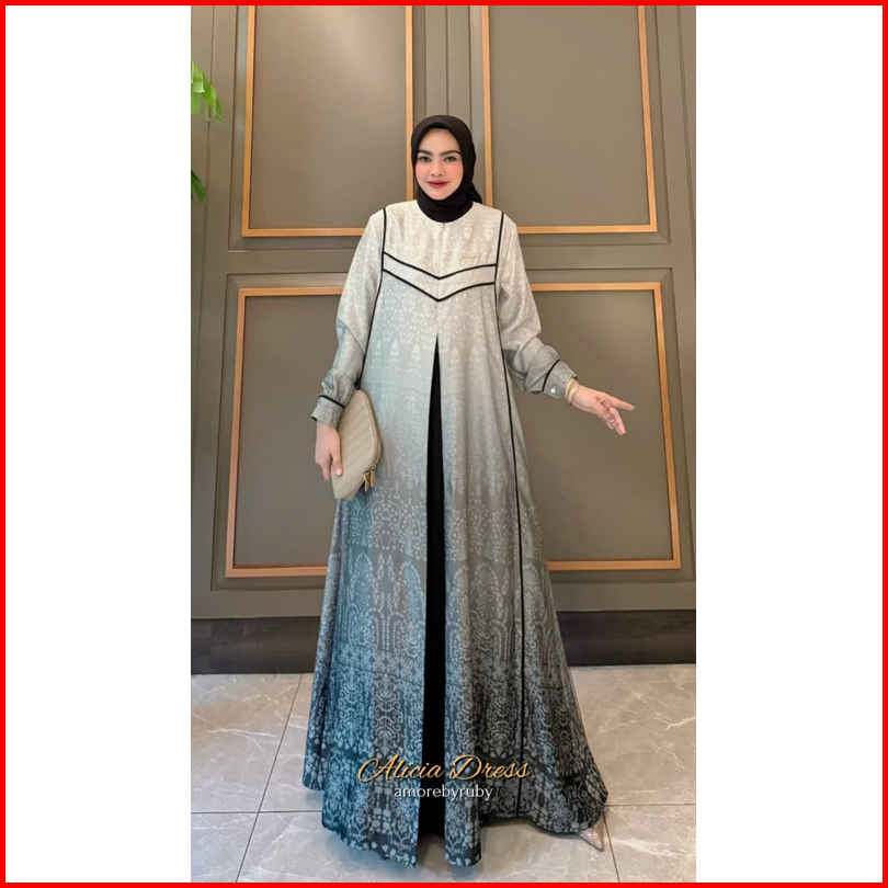 Alicia Dress Amore By Ruby Gamis Silk Motif Batik Mewah Busui Friendly Wudhuable Tali Pinggang Murah Lebaran Muslimah