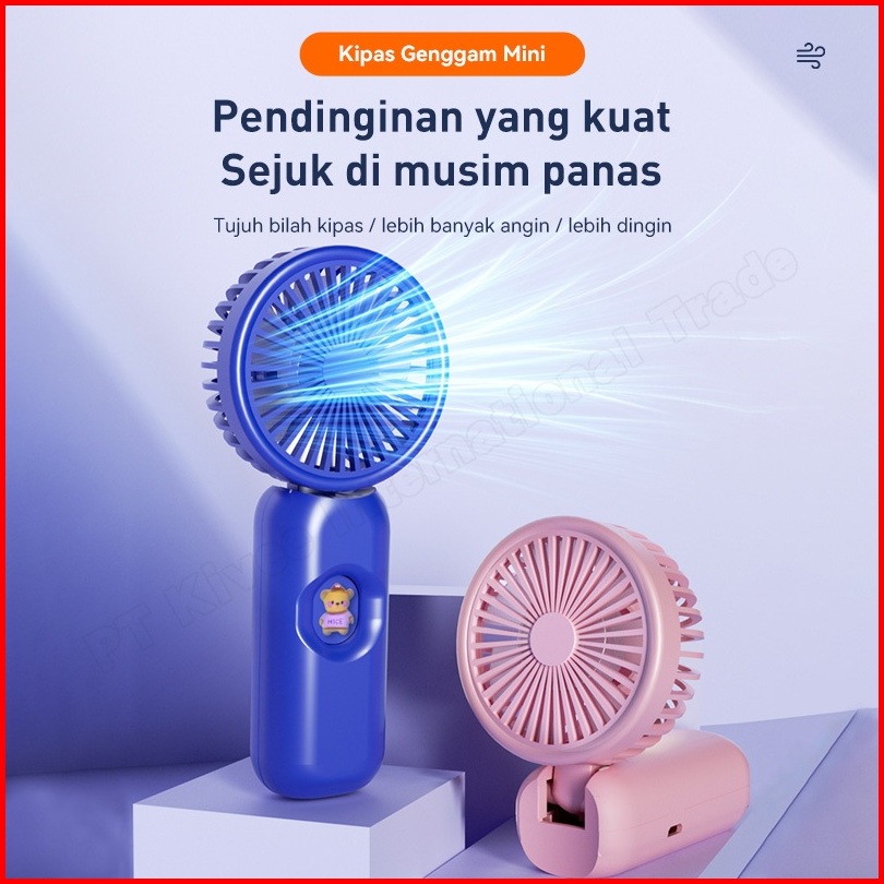 Basike Kipas Angin Mini Portable Dapat Dilipat 3-speed Adjustment Rechargeable Beruang Ip Fan Mini