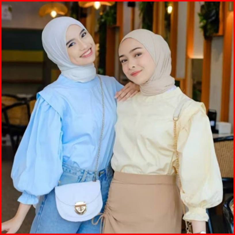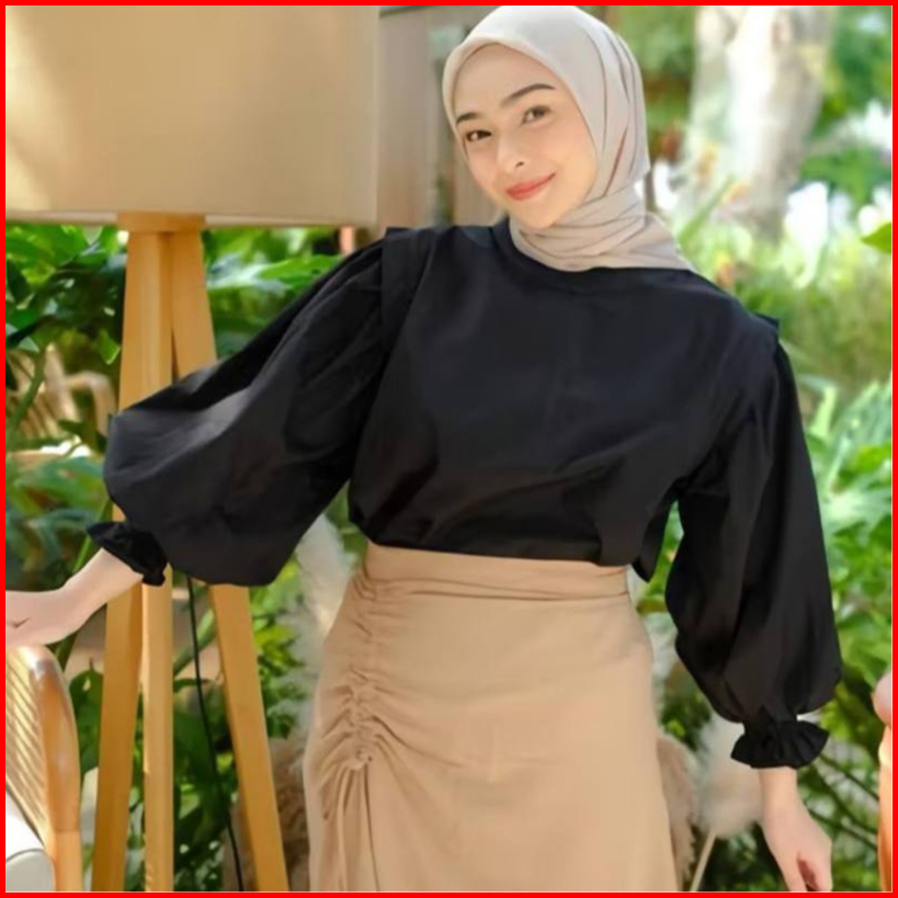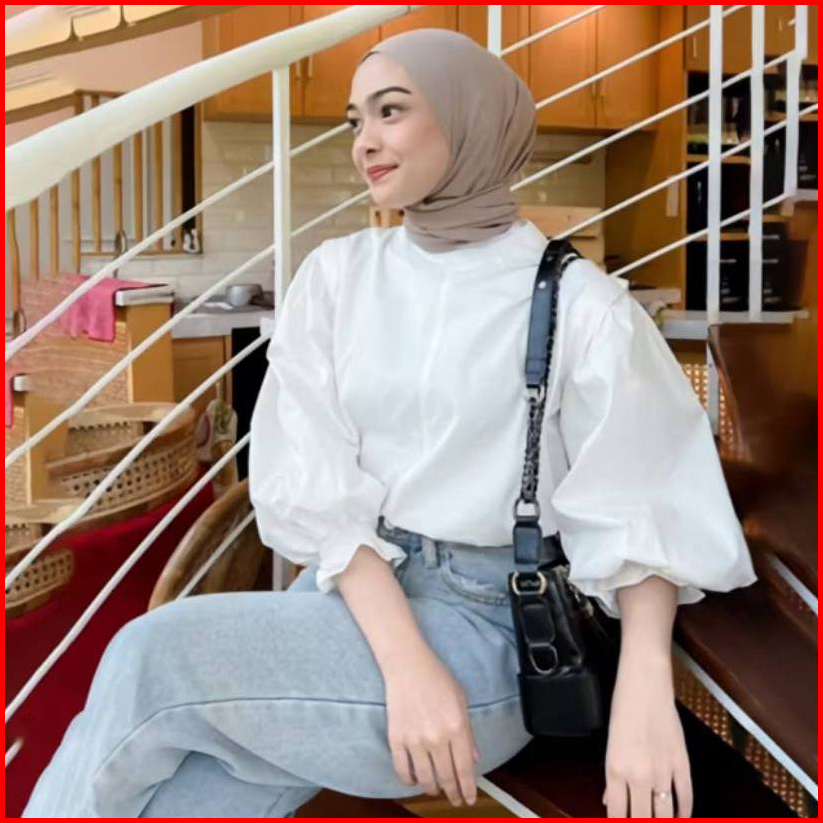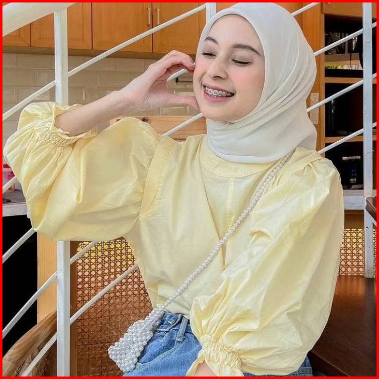 Moni Blouse Katun Linen - Blouse Puffy Lengan Balon - Atasan Wanita Korean Style