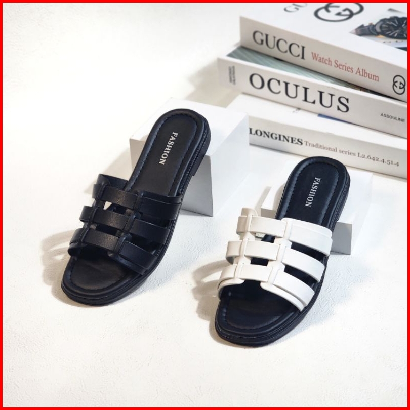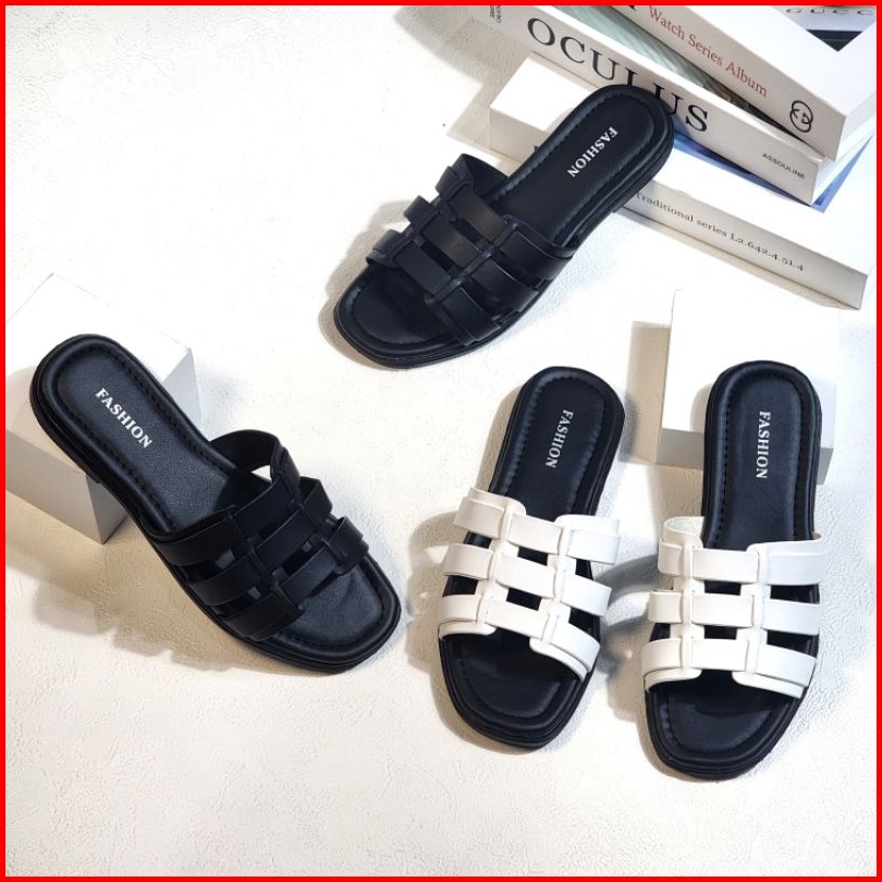 Sandal Wanita Teplek Greta Casual Empuk Sol Karet Model Slop Flat Cewek