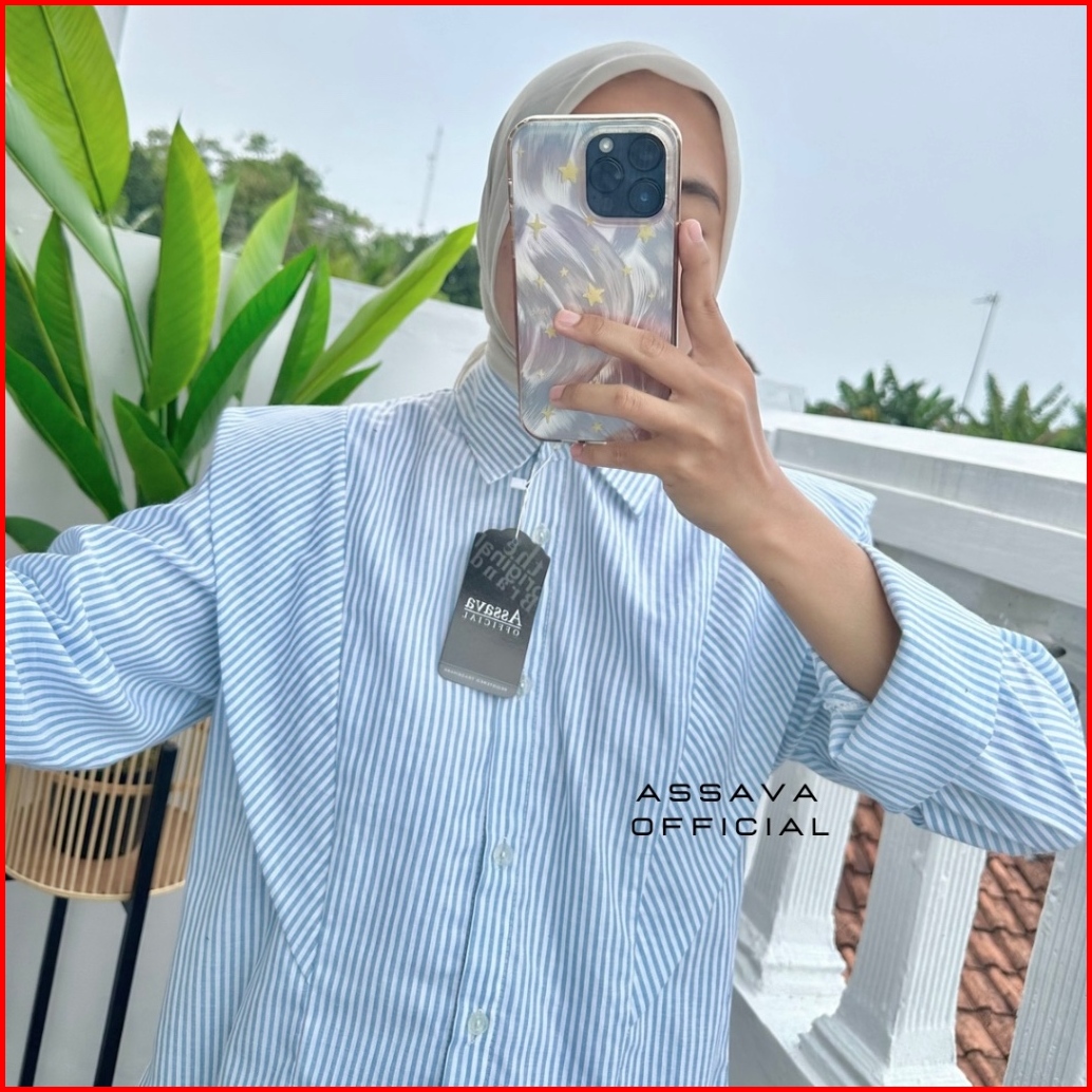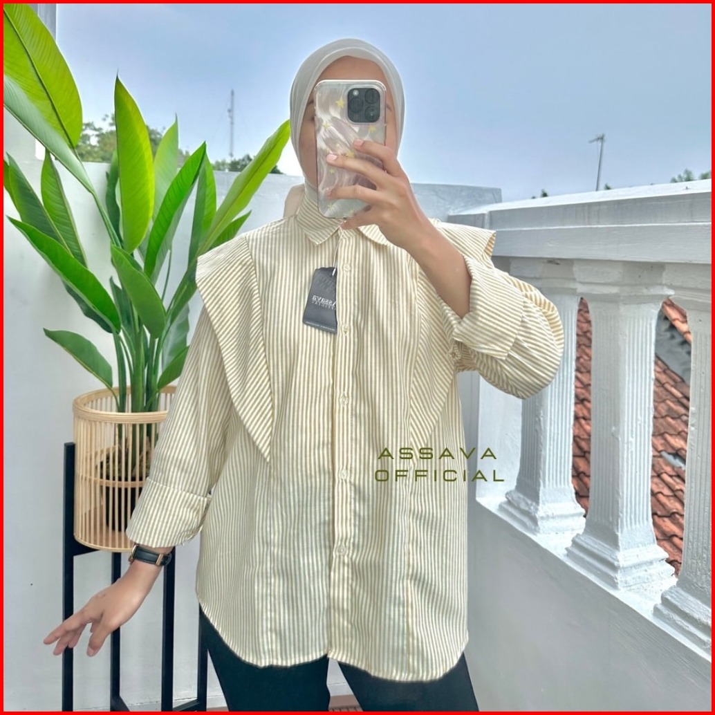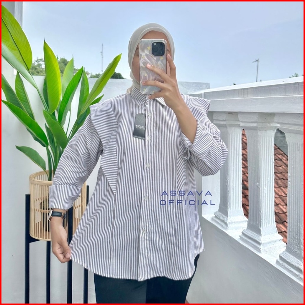 Kara Kemeja Salur Wanita - Salur Striped Shirt - Kemeja Wanita Salur Katun Premium